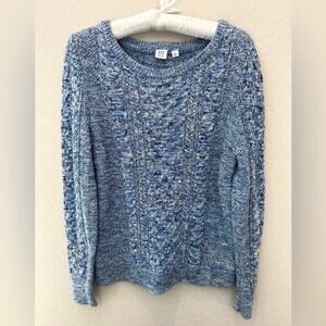 GAP | Blue Marled Cable Knit Crewneck Sweater 100% Cotton | Medium