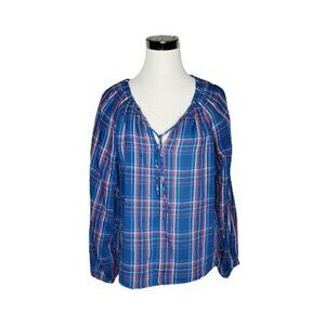 GAP Blue Red White Plaid Keyhole Blouse Women’s Size Small