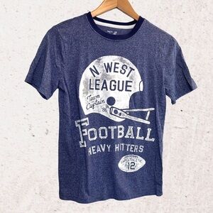 Blue short sleeve tee with football graphic. Comfortable and stylish for kids.