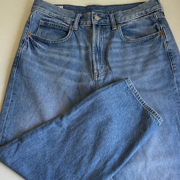 These GAP jeans feature a timeless straight cut in a rich blue hue, perfect for everyday wear. The denim is crafted to offer a comfortable fit with a classic look, making them a versatile addition to any wardrobe. Enjoy the subtle fading that adds character and a lived-in feel.