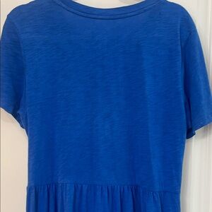 Comfortable blue dress with short sleeves. Perfect for casual outings. Tiered and very flowy, gently used condition.knee length