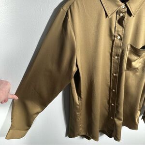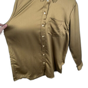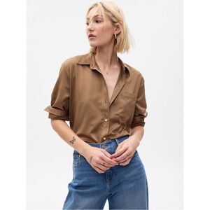 GAP Boyfriend Button-Up Boyfriend Satin Shirt NWT Size Medium Dried Moss