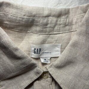GAP Boyfriend Fit Shirt Women's Beige, Size M, Long Sleeve, Linen, Boho,