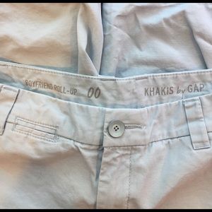 I'm selling these GAP Boyfriend Roll-up khaki shorts in a beautiful light blue color! They're size 00 and sadly no longer fit. They're 100% cotton. I'm selling the same shorts in navy and mint green so check them out! Open to offers.