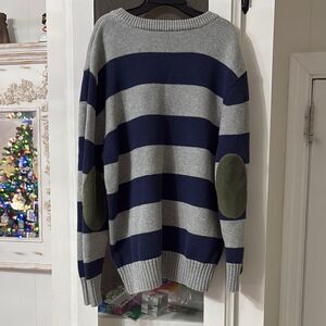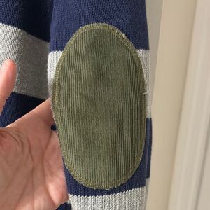 GAP Boys Gray and Navy Striped Sweater with Olive Green elbow patches Like New!