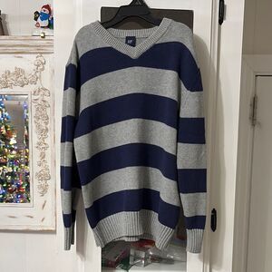 Stay stylish and comfortable with this GAP boys sweater. Featuring bold gray and navy stripes, this sweater is perfect for any casual occasion.