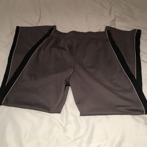 Excellent condition..like new. Has thick black/thin silver stripe on sides. Drawstring waist, pockets on side, 100% Polyester. Boys Size XL/12.