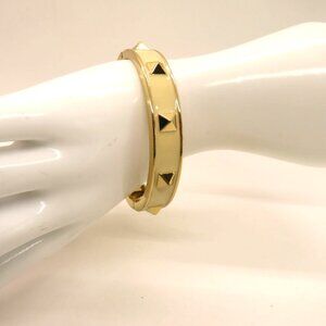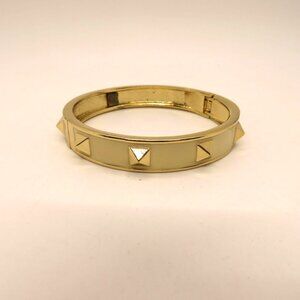 A chic bracelet featuring a gold-tone finish, cream enamel accents, and pyramid studs, secured with a hinge clasp for easy wear.