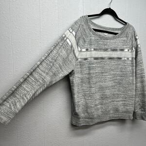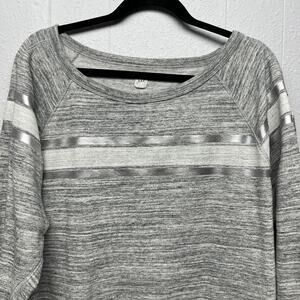 GAP women's pullover gray sweatshirt. Boat neck. Long sleeves. Metallic silver striped. In good used condition. No stains, tears or holes.