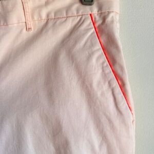 These Gap Khakis in pale pastel pink, size 16, are a versatile wardrobe staple suitable for travel, casual outings, and business meetings. Made from a comfortable cotton-spandex blend, they feature a mid-rise waist with a flat front, straight leg style, and pockets for added convenience. The pants are machine washable, making them easy to care for and perfect for all seasons. Ideal for a college, city, or preppy look, these khakis are a stylish and comfortable choice for any occasion.