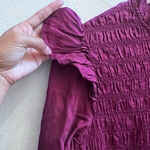 GAP Burgundy High Neck Ruffle Stretch Poplin Long Sleeve Pockets Women's Size M