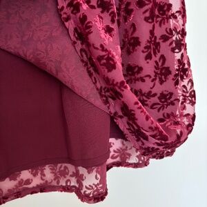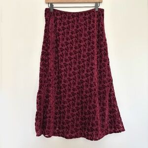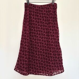 GAP Burnout Velvet Midi Skirt in red floral print M Petite