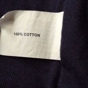 100% cotton blazer! Has pockets and is very soft and comfortable. Navy blue and red lining. Casual wear.