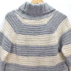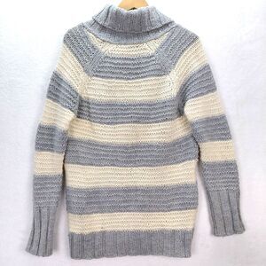 GAP Cable Knit Sweater Womens Size M Gray Cream Striped Wool Alpaca Shawl Collar