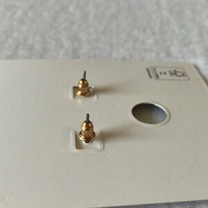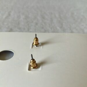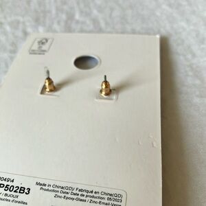 Festive candy cane earrings featuring red and white stripes with sparkling gold star accents. Perfect for holiday celebrations.