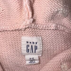 Adorable Gap cardigan sweater with white dots. Button close down the front with cute bear ears on hood.