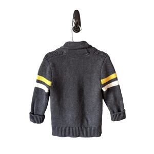 GAP Cardigan Sweater Toddler 2T Fisherman Toggle Stripe Retro Preppy Gray Yellow
