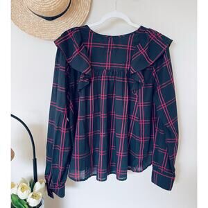 Elevate your wardrobe with this stylish GAP Cascade Ruffle Plaid Top! This top features a flattering cascade ruffle design and a classic plaid pattern, perfect for adding a touch of sophistication to any outfit. Made with high-quality materials, it offers both comfort and durability.