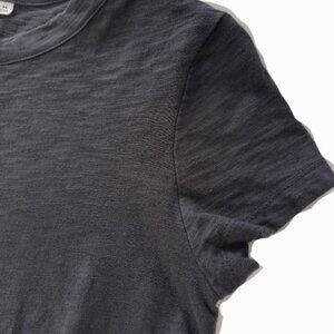Its charcoal gray (dark gray) design is totally timeless. It features a classic crew neck and short sleeves. The best part of this design is the matching fabric belt, which allows you to cinch it at the waist to define your silhouette or leave it looser for a relaxed look. It also has small side slits at the hem that add movement as you walk.