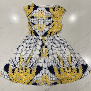 GAP Casual Knit A Line Dress Pockets Lined Elastic Waist Navy White Yellow Sz XS