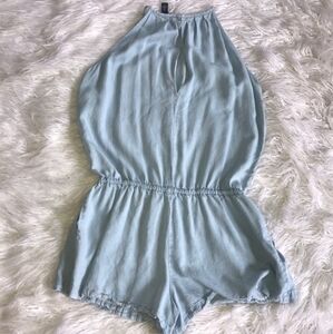 GAP Chambray Denim Light Blue Romper Women's Medium M Halter Neck Sleeveless