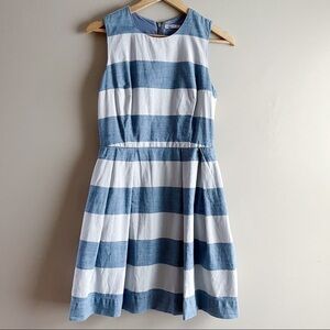 GAP Chambray Indigo Stripe Fit & Flare Sleeveless Dress with Pockets, Size 2