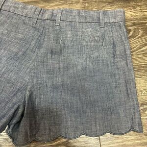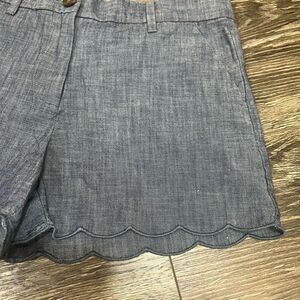 Gap chambray blue shorts with scallop hemline. Front and back pockets, zipper fly with button. Size 0.