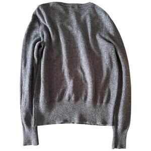 • Charcoal gray knit with bold colorblock heart design in red, pink, orange, gray, and blue