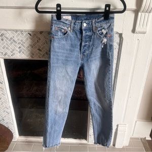 GAP cheeky straight high-rise Jean. Distressed details and raw hemline. Light blue wash. Very flattering, casual vibe. Size 25 / 0