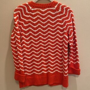 GAP Chevron Pointelle V Neck Wool Blend Orange White Stripe Knit Sweater SMALL