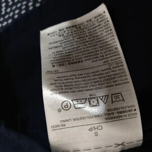 GAP Chevron Dots Trapeze Dress in navy blue and white with side pockets and keyhole back. Made of a chiffon like material. very flowy, mini length but it should stop at your knees. Super cute. Size Small. Sleeveless. Order it today 😊❤️👍.
