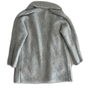 Cozy light gray cardigan from GAP featuring a chunky knit texture, shawl collar, and two front pockets. Designed for warmth and comfort with a relaxed silhouette and soft handfeel. Perfect for layering over basics or pairing with denim for a casual, polished look.