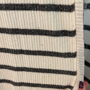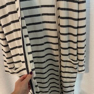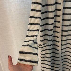 Elegant open-front design. Black and cream stripes. Ideal for layering.