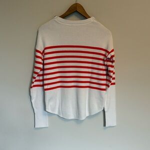 GAP Classic White Knit Sweater with Button Shoulders and Orange Stripes - small