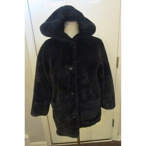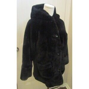 GAP Coat Black Faux Fur Jacket Hooded Vintage Front Pockets Lined Size S/M