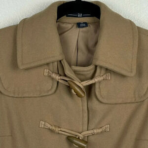 GAP Coat Women's Sz XS Duffle Toggle Collared Pocket Strap Lined Wool Brown Tan