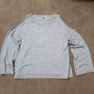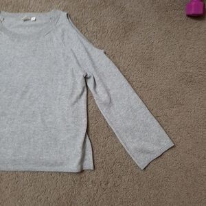 GAP Cold Shoulder Sweater Crew Neck Merino Wool Blend Size Medium light gray