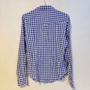 GAP Lightweight Collared Snap Button Down Blouse Shirt Top in Navy Blue and White Checkered Plaid and Womens Size Medium (fits more like a Womens Small). Gently used and in excellent condition.