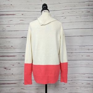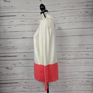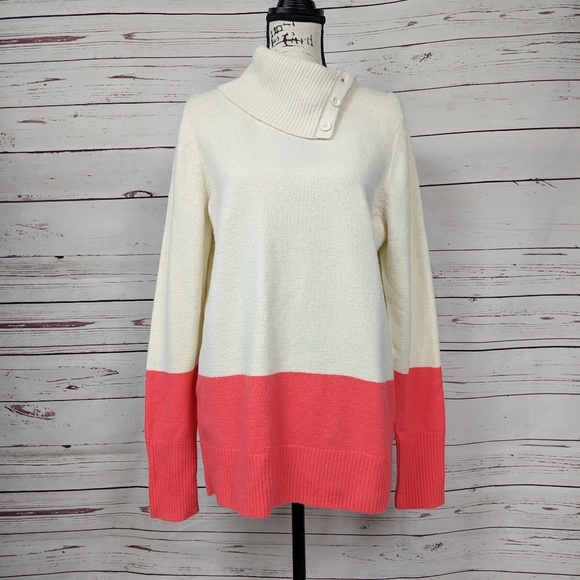 Turtleneck collar that buttons on one side. Long sleeves. Perfect for colder climate. Acrylic/nylon/spandex. Please see measurements in the last picture. Good pre-owned condition, no flaws.