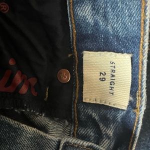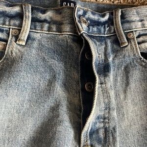 GAP Cone Denim High Rise Straight Crop Jeans Medium Indigo Wash Button Fly Sz 29