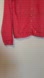coral button-up sweater.