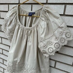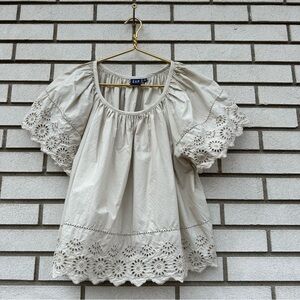 GAP Eyelet Lace Flutter Short Sleeve Top Beige