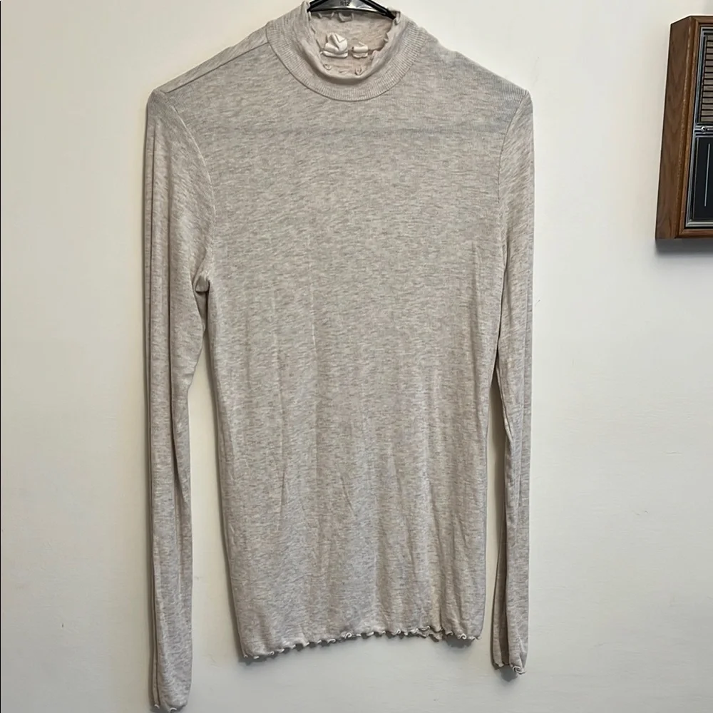 Stylish cream turtleneck with ribbed texture. Ideal for any season.