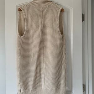 Gently worn cream sweater vest in cotton. Versatile, wear over a shirt dress or jeans with long or short sleeves. Collar can lay flat or upright. Like new, only worn a few times and stored in a cedar drawer.
