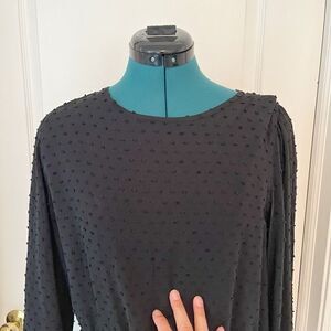 GAP Crew Neck Polka Dot Textured Long Sleeve Lined Peplum True Black Blouse