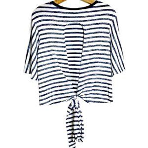 GAP Crew Neck Striped Tie Back Keyhole Top Flutter/Bell Sleeve Women's Small NWT