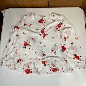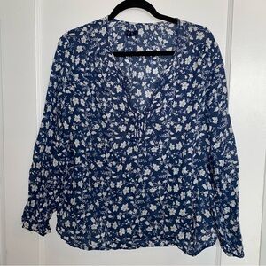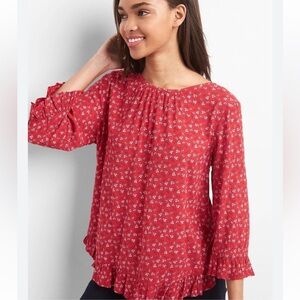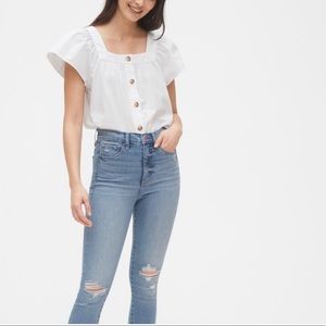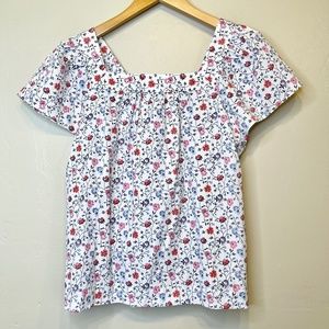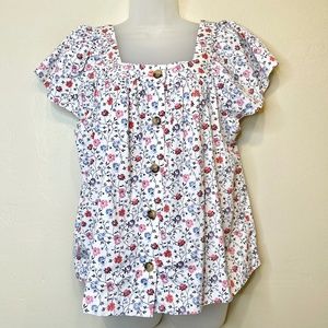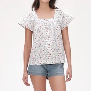 GAP | Crisp Ditsy FLORAL Square Neckline Short Flare Sleeves Button Placket Top