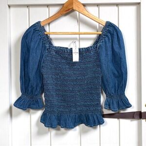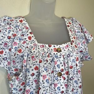 Gap Ditsy Floral Pattern Square Neckline Short Flutter Flare Sleeves Button Placket Crisp Lightweight Short Flare Sleeves Cottagecore Top Shirt Blouse