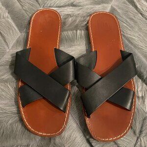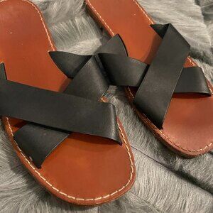 GAP Criss-Cross Open Toe Flat Slides Black Size 11