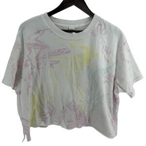 GAP Cropped Tie Dye Sweatshirt L White Multicolor Swirl Retro Cut Off Crewneck
